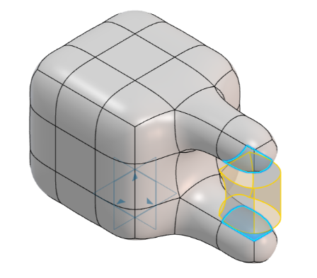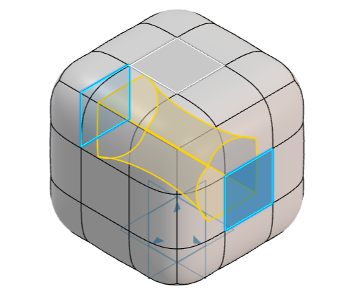 Add more material to the sub-d model by extruding a face just by selecting it. Select two opposing faces from different extrusions with this tool and see them joining as a single body. Also, selecting two opposing faces of a cube will create a material removal output without compromising the curvature continuity.