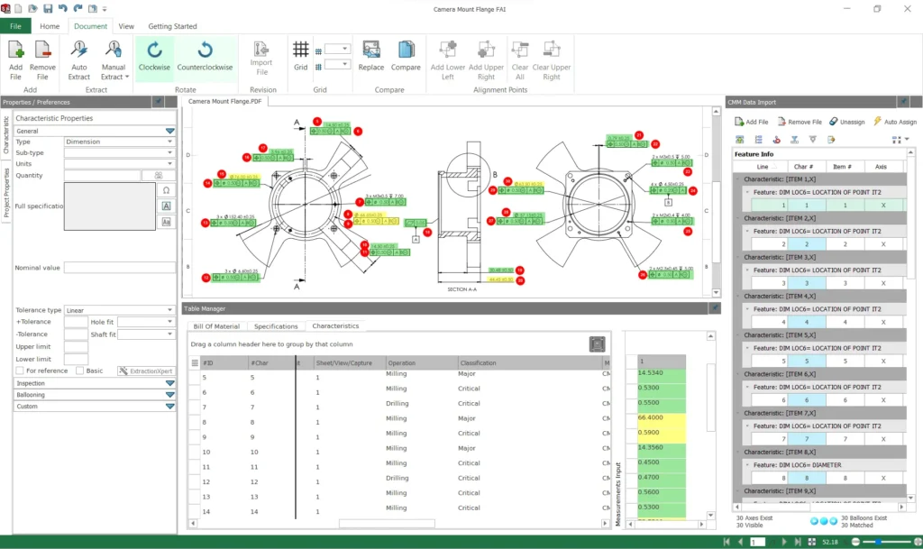 With CMM Data Import option we can import measurement values from CMM reports and reconcile them with the expected values from the drawing to create a complete inspection report.