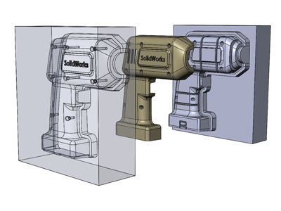 SOLIDWORKS has tools and commands specific for Mold designing for core and cavity splitting. You can create a mold using a sequence of integrated tools that control the mold-creation process.
