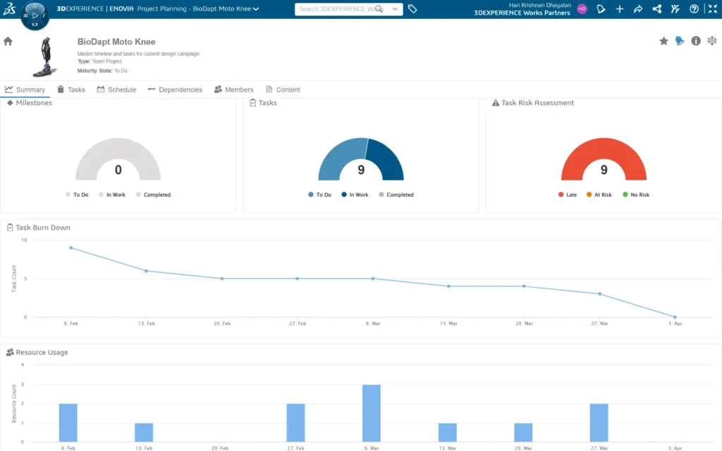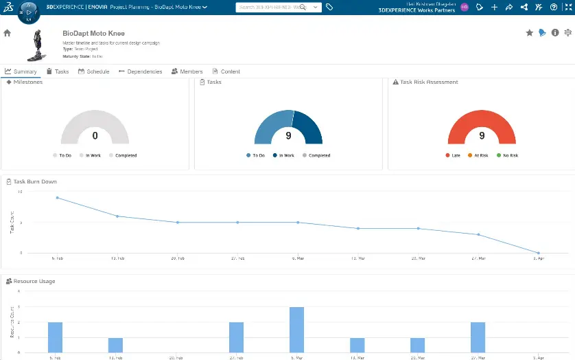 - Additional features such as Task Burn Down, Resource Usage, Assignees with Open Tasks & Deliverable Count by State help in managing the project so effectively.